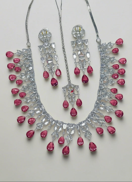 Diamonds and Rubies Jewellery Set with Mang Tika