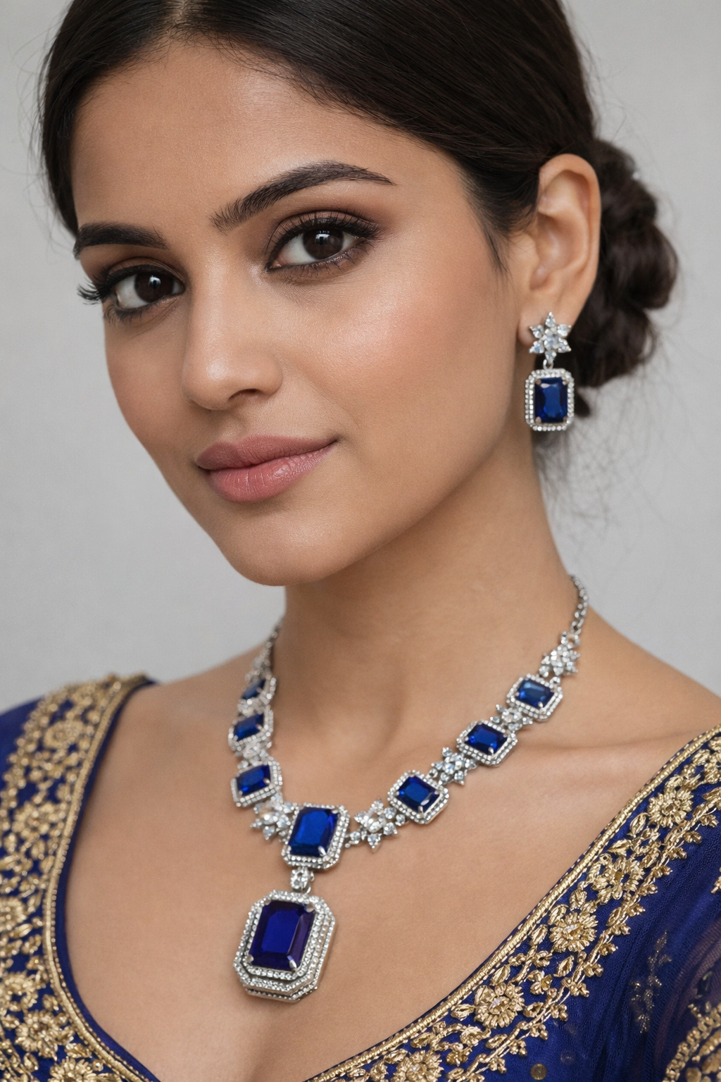 Unleash your inner diva with this AD Necklace featuring a beautiful Blue Sapphire Set. Elevate your style game with this stunning piece that will make you stand out in any crowd. Perfect for special occasions or adding a touch of glam to your everyday look. (Slay, queen, slay! ♕)