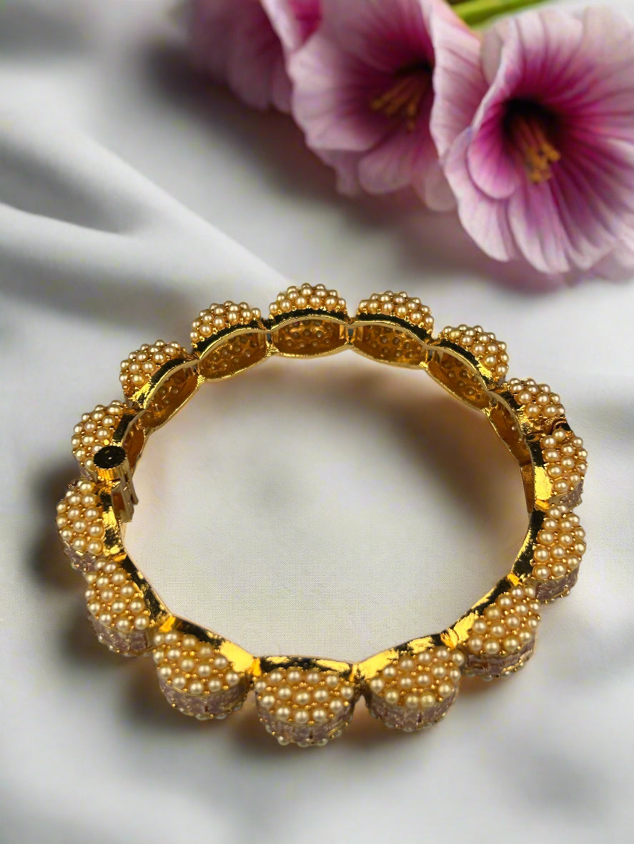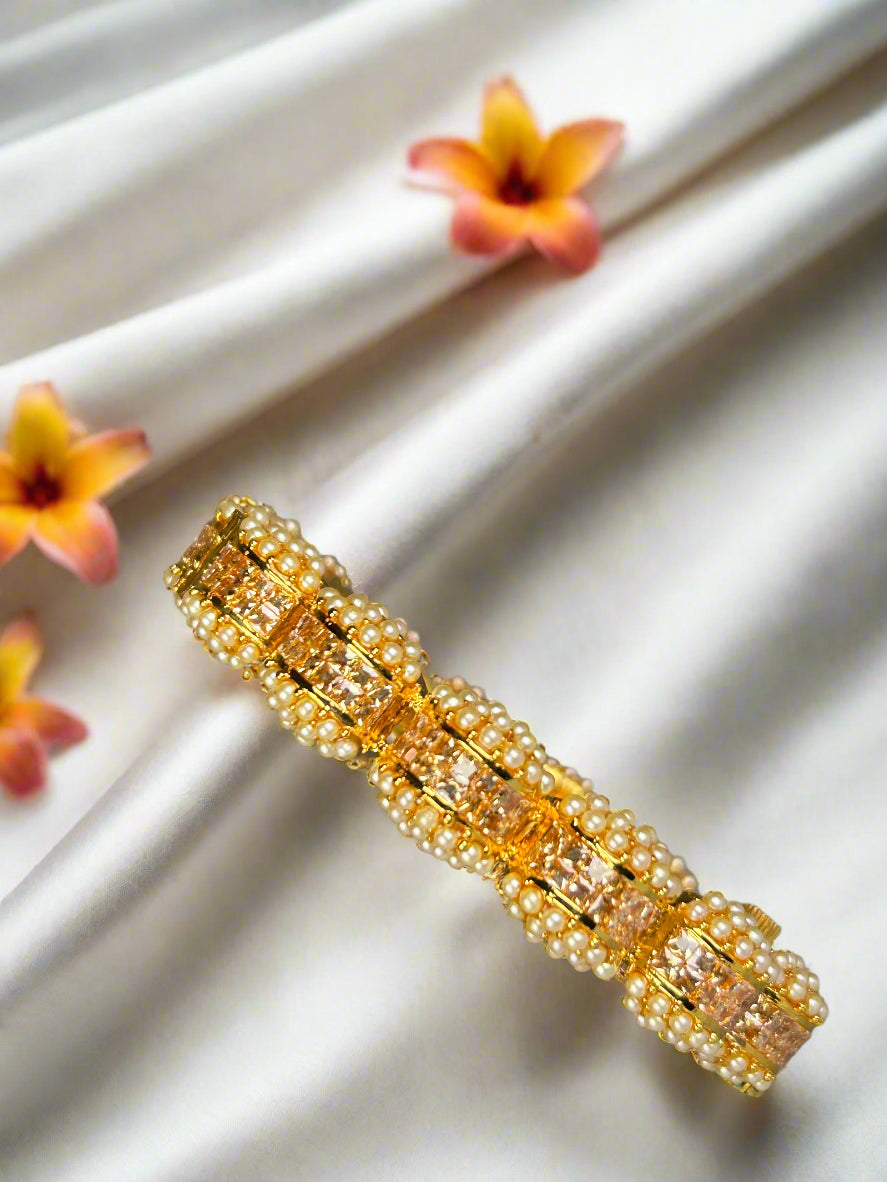 Brighten your look with the Amaira Gold Plated Pearls Bangle! This playful piece combines the classic charm of pearls with a shiny gold-plated finish, making it perfect for adding a dash of fun elegance to any outfit. Lightweight and stylish, it’s your new go-to for effortless sparkle and a touch of personality.