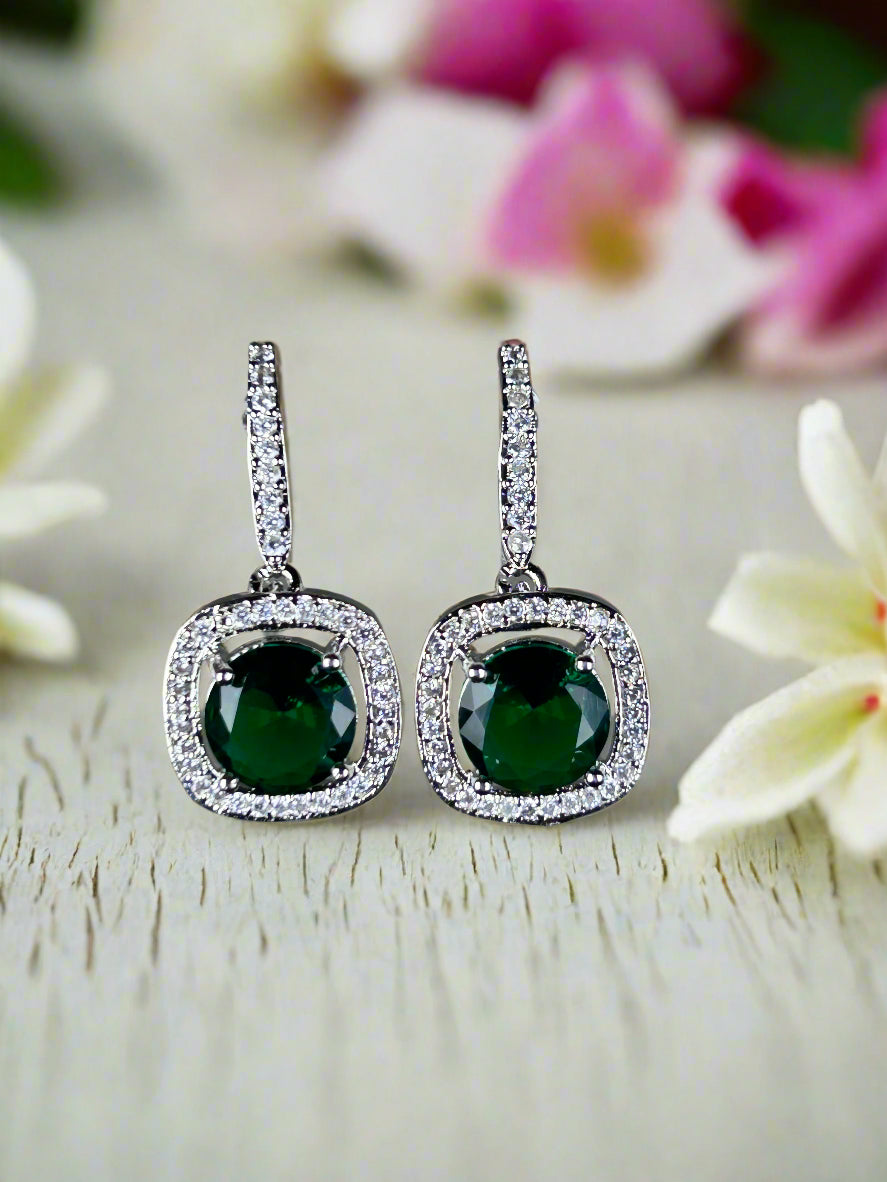 Add a touch of elegance with these stunning Emerald Earrings. These earrings will elevate any outfit with their emerald gemstones and unique design. Perfect for adding a pop of colour to your look. Don't miss out on this playful and stylish addition to your jewellry collection!