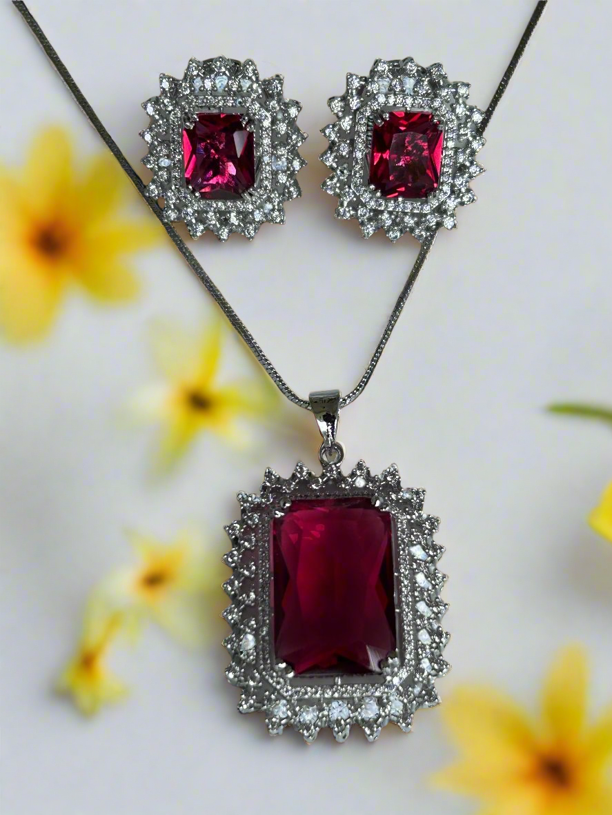 Add some sparkle to your outfit with this quirky Ruby and AD Pendant Set. Made with stunning rubies and sparkling AD stones, this set is sure to turn heads and elevate your look. Perfect for any occasion, this pendant set is a must-have for any accessory lover!